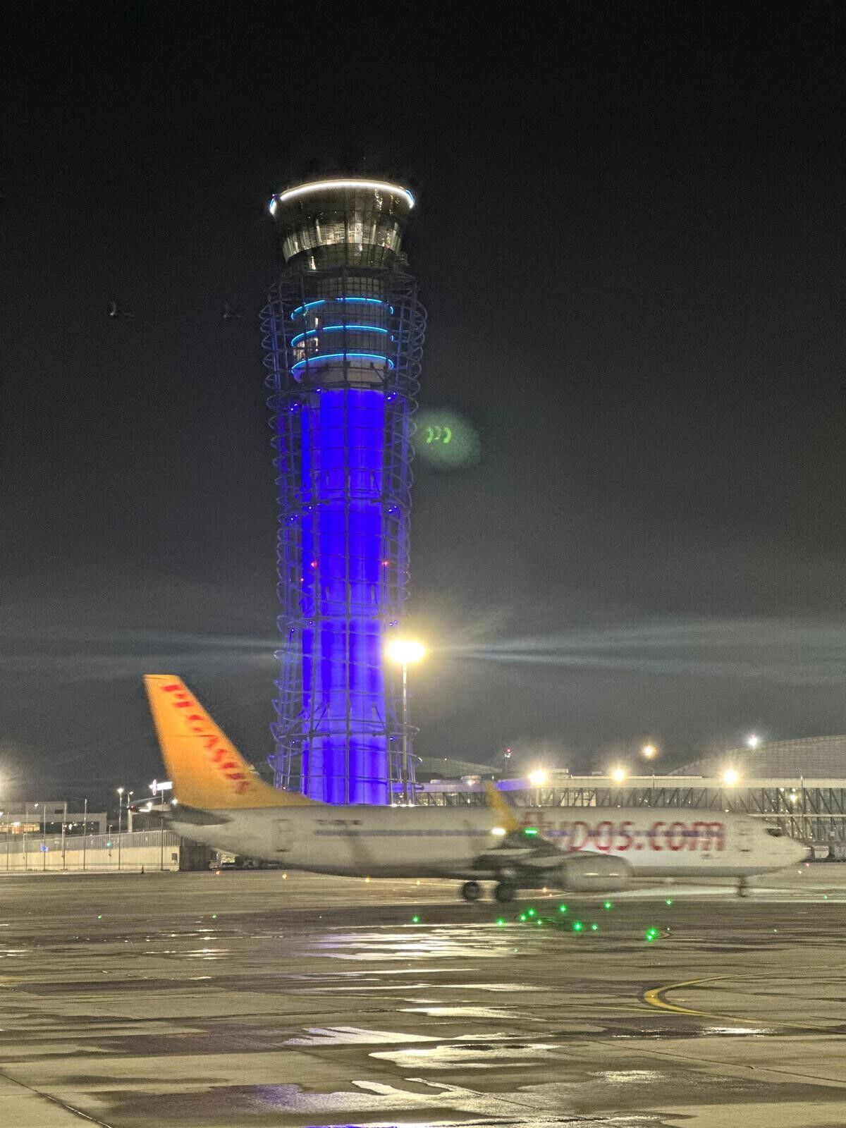 Sabiha Gökçen Havalimanı kulesi maviye büründü